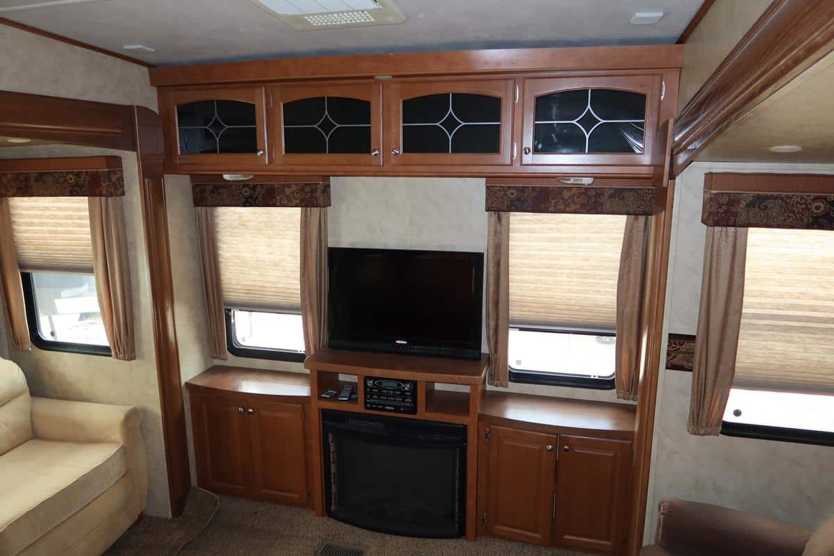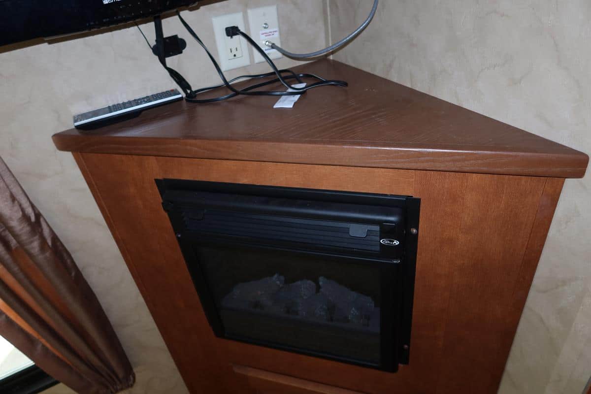 - Rear entertainment layout with large TV and fireplace