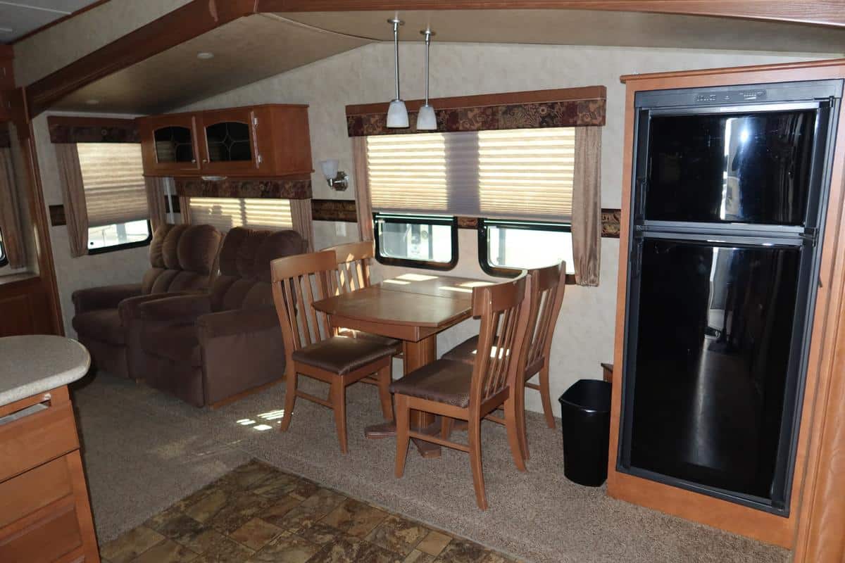 - Free-standing dinette and plush lounge chairs or recliners (layout may vary)