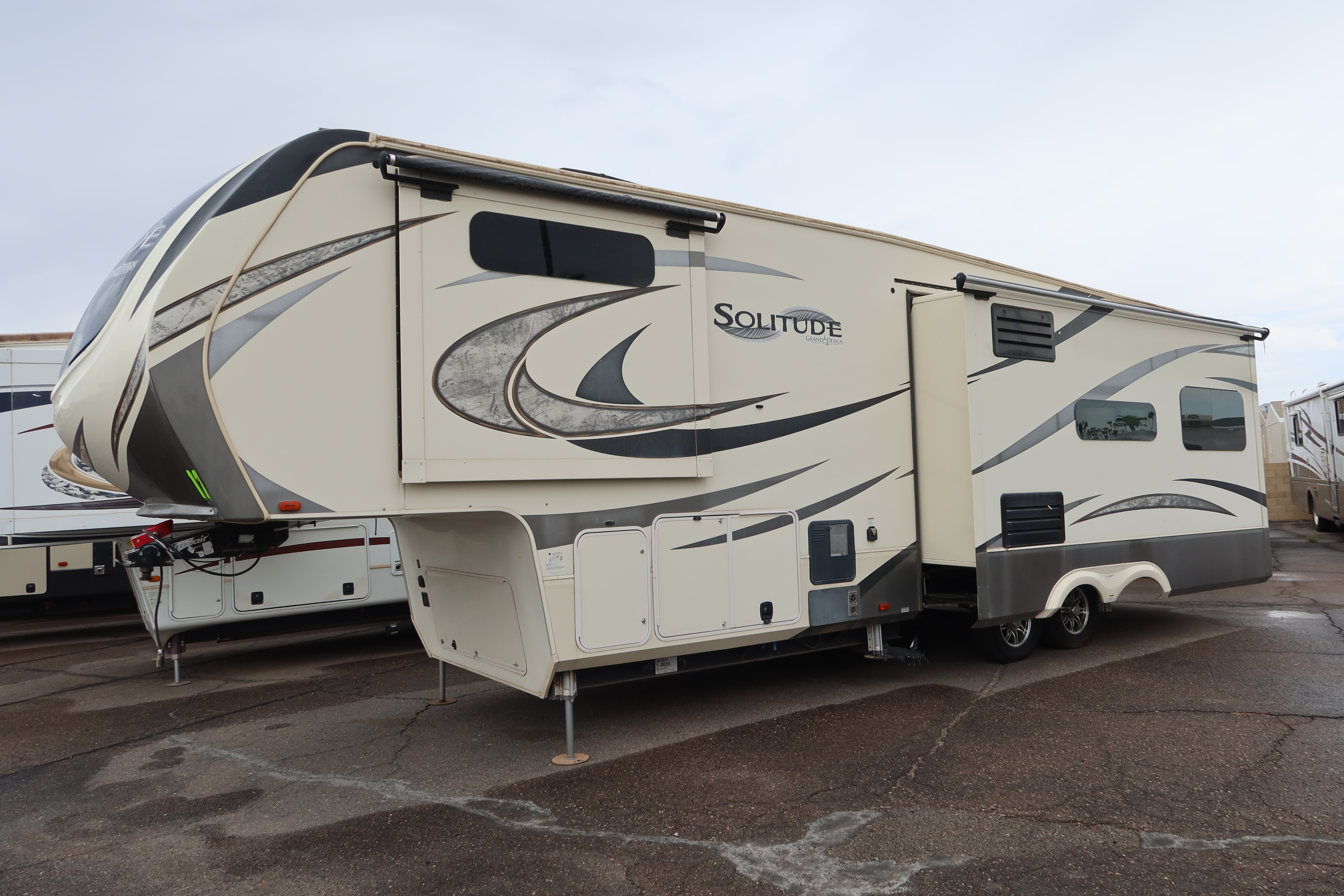 **2017 Grand Design Solitude ST300GK Luxury, Comfort & Space for Extended Stays** If you re in the market for a fifth wheel that offers true residential comfort, the **2017 Grand Design Solitude ST300GK** delivers on all fronts. Designed with full-time RVers and extended-stay adventurers in mind, this luxury fifth wheel combines a spacious layout, premium finishes, and top-tier construction quality. With Grand Design s reputation for craftsmanship and durability, the ST300GK stands out as a dependable and refined home-on-wheels. Step inside and experience an open floorplan with high-end touches throughout. The rear living area features theater seating, a tri-fold sofa, and a large entertainment center with a fireplaceperfect for relaxing after a day on the road. The gourmet kitchen includes residential-style appliances, a large island, and generous pantry space, making meal prep feel like home. Up front, the master suite provides privacy and comfort with a walk-around queen bed, large wardrobe, and washer/dryer prep. Whether you re chasing sunsets across the country or setting up for long-term stays, the Solitude ST300GK gives you all the space, style, and comfort you need. **Key Features & Specifications:** * **Length:** Approx. 34.8 ft * **GVWR:** 15,000 lbs * **Slide-Outs:** 3 spacious slides for expanded interior living * **Sleeping Capacity:** Sleeps up to 4 * **Construction:** Laminated aluminum-framed walls with high-gloss fiberglass exterior * **Rear Living Area:** Theater seating, tri-fold sofa, electric fireplace, LED TV * **Kitchen:** Solid-surface countertops, residential refrigerator, convection microwave, large island with double sink * **Bathroom:** Full-size shower with skylight, porcelain toilet, linen storage * **Master Bedroom:** Queen bed (king upgrade optional), large wardrobe, washer/dryer prep * **Climate Control:** Dual A/C units, 35,000 BTU furnace, heated and enclosed underbelly * **Storage:** Generous exterior pass-through storage, pantry, and cabinet space throughout * **Extras:** Solar and Lithium Battery setup, Central vacuum system, roller shades, and premium insulation for all-season comfort **Why Choose the 2017 Grand Design Solitude ST300GK?** This model blends residential comfort with the durability and innovation Grand Design is known for. With its intelligently designed layout, high-quality finishes, and superior construction, the Solitude ST300GK is ideal for full-timers and those who dont want to compromise while on the road. If you re looking for a fifth wheel that feels like homewherever you park itthis is the one to beat.