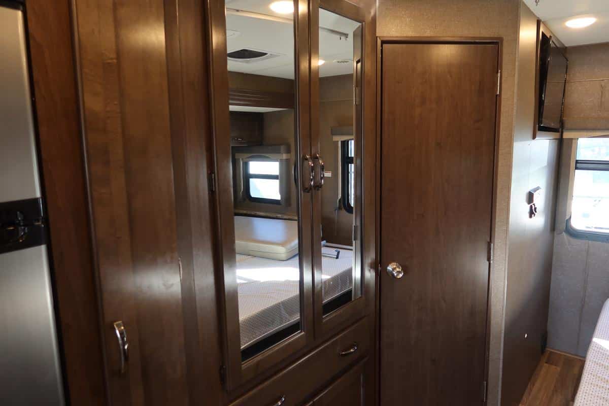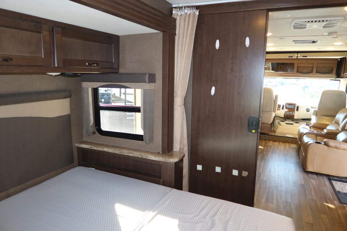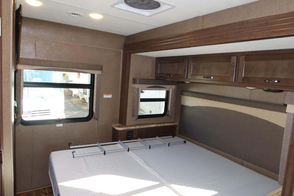 - Front Overhead Bunk: Power drop-down bunk