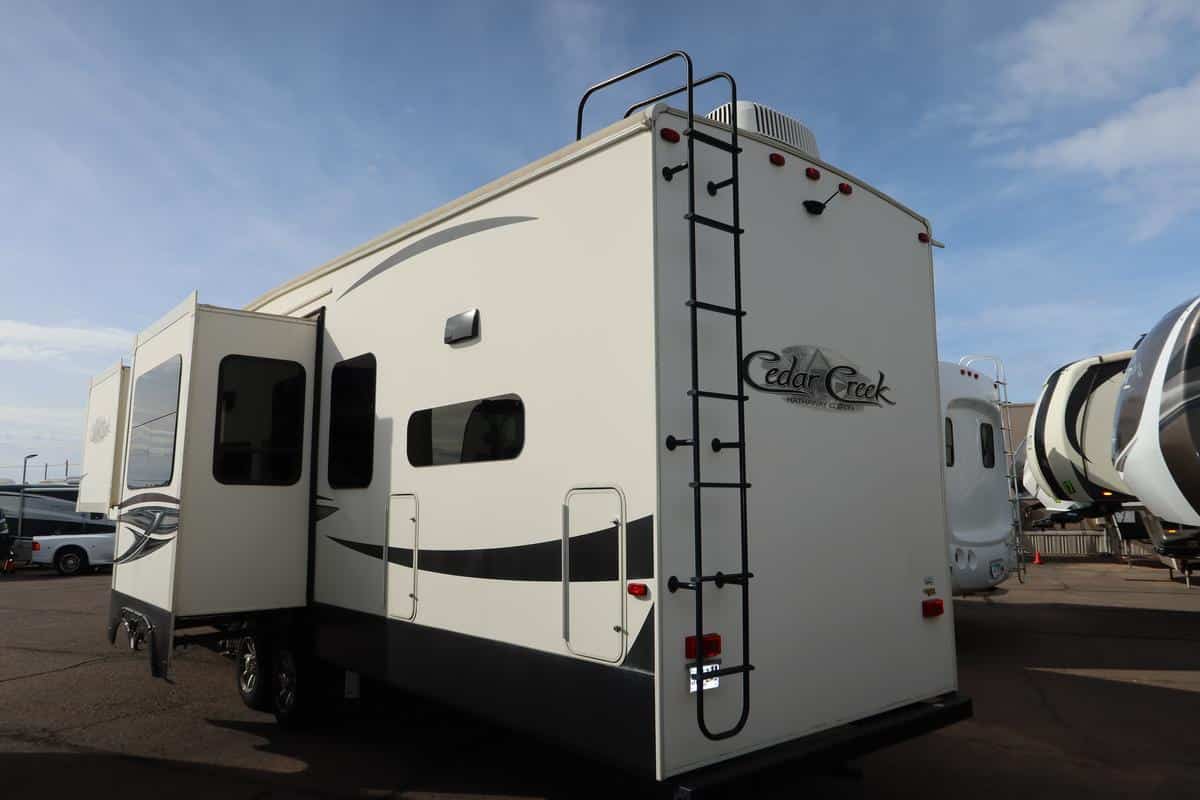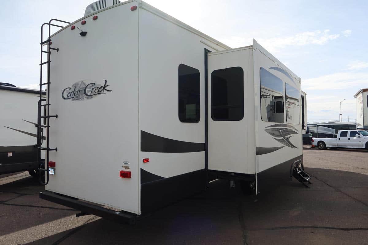 Unique Selling Proposition: The 2020 Cedar Creek Hathaway 38DBRK stands out with a highly desirable rear kitchen floorplan, generous cargo capacity, and premium residential features that make long-term travel effortless and enjoyable. With three slideouts and 2 bathrooms maximizing livable space and thoughtful amenities throughout, this fifth wheel delivers high-end comfort and value that elevate any adventure.