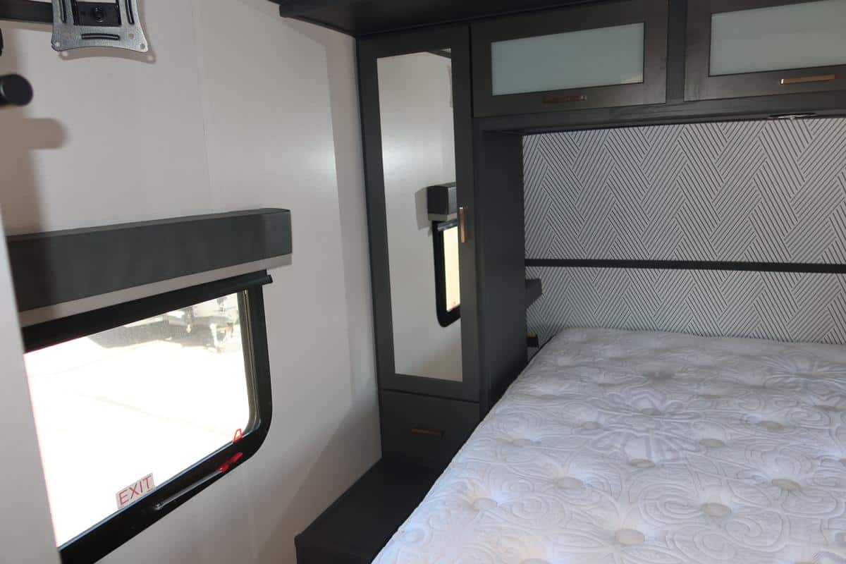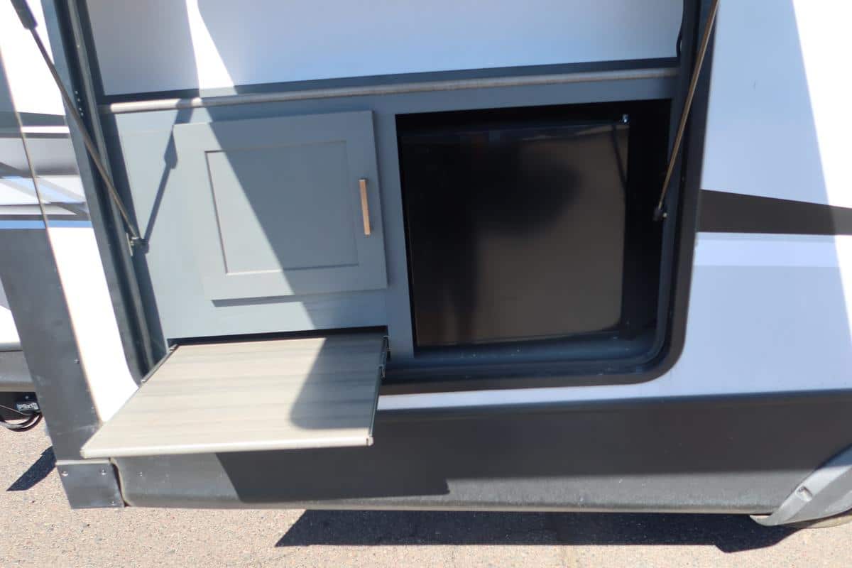 The private bedroom provides a peaceful retreat with generous storage, while the spacious bathroom adds residential-style comfort. Built with Keystones focus on lightweight construction and durability, this travel trailer is engineered to tow easier while still delivering the upscale features todays RV buyers demand.