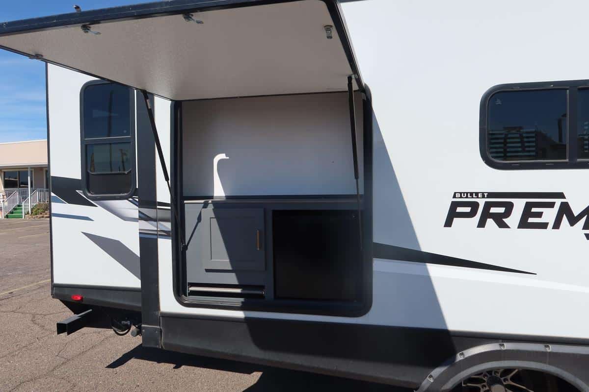 The 2023 Keystone Bullet Premier 30RIPR is designed for RVers who want residential comfort without sacrificing easy towing performance. As part of Keystones premium lightweight travel trailer lineup, this model combines sleek exterior styling with a spacious, intelligently designed rear living floorplan. Whether youre setting up for a weekend getaway or an extended stay, the 30RIPR delivers comfort, convenience, and modern appeal in every detail.